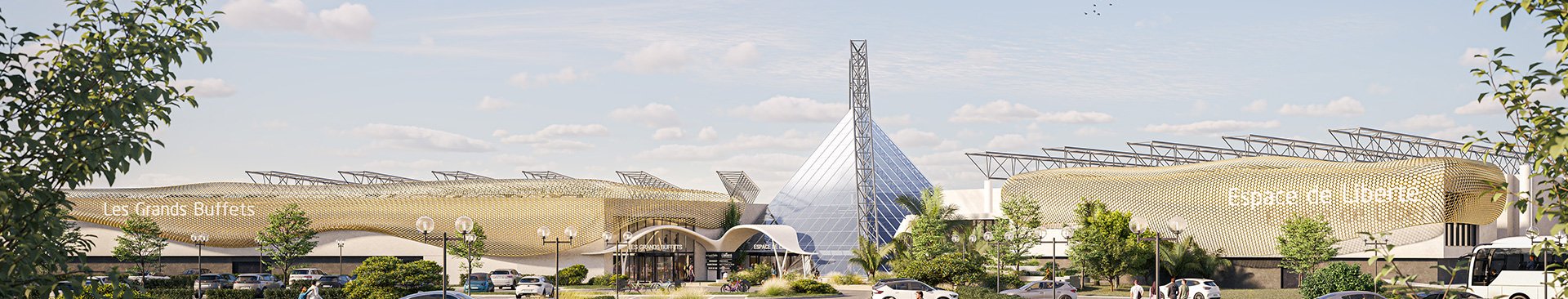 Deux nouveaux bâtiments, visibles depuis la façade principale, seront créés pour de nouvelles activités des Grands Buffets. Pour adoucir les lignes de ces nouveaux espaces, une résille en aluminium tridimensionnelle va envelopper les façades principales, offrant des jeux de lumière, de jour comme de nuit.